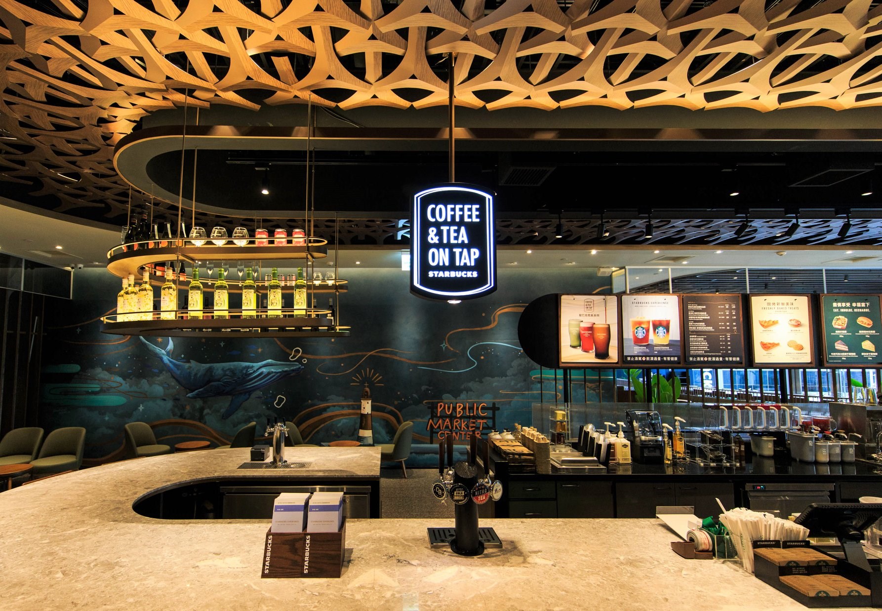 除了星巴克經典咖啡飲料,門市還設有「氮氣系列(Coffee & Tea on Tap)」以及新鮮現烤的烘焙點心酒精飲品,更特別的是竟然有提供酒精類飲品,在浪漫的空間中和三五好友小酌一杯也很不錯呢!