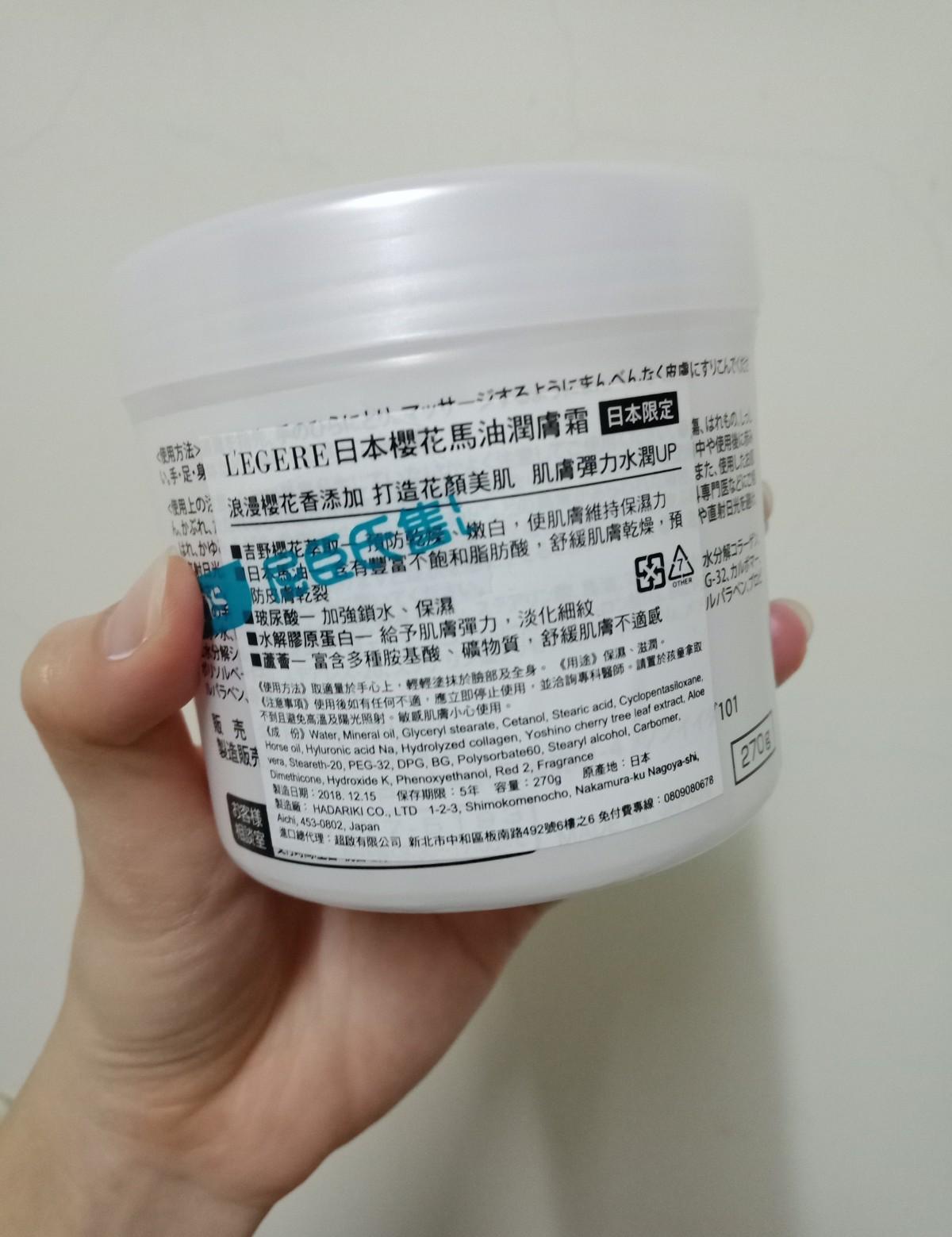 結果結帳時熱心的小屈店員跟我推薦了另一款日本櫻花馬油潤膚霜