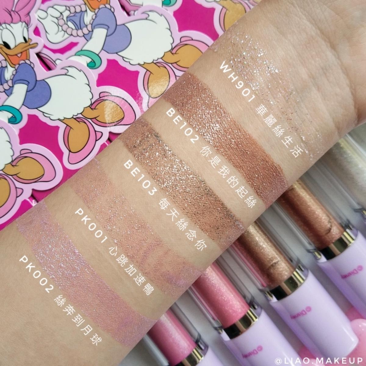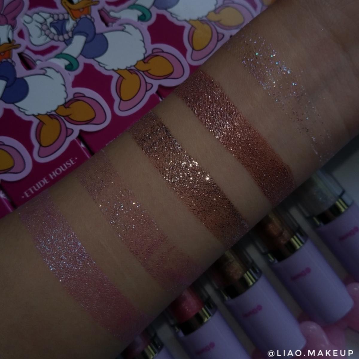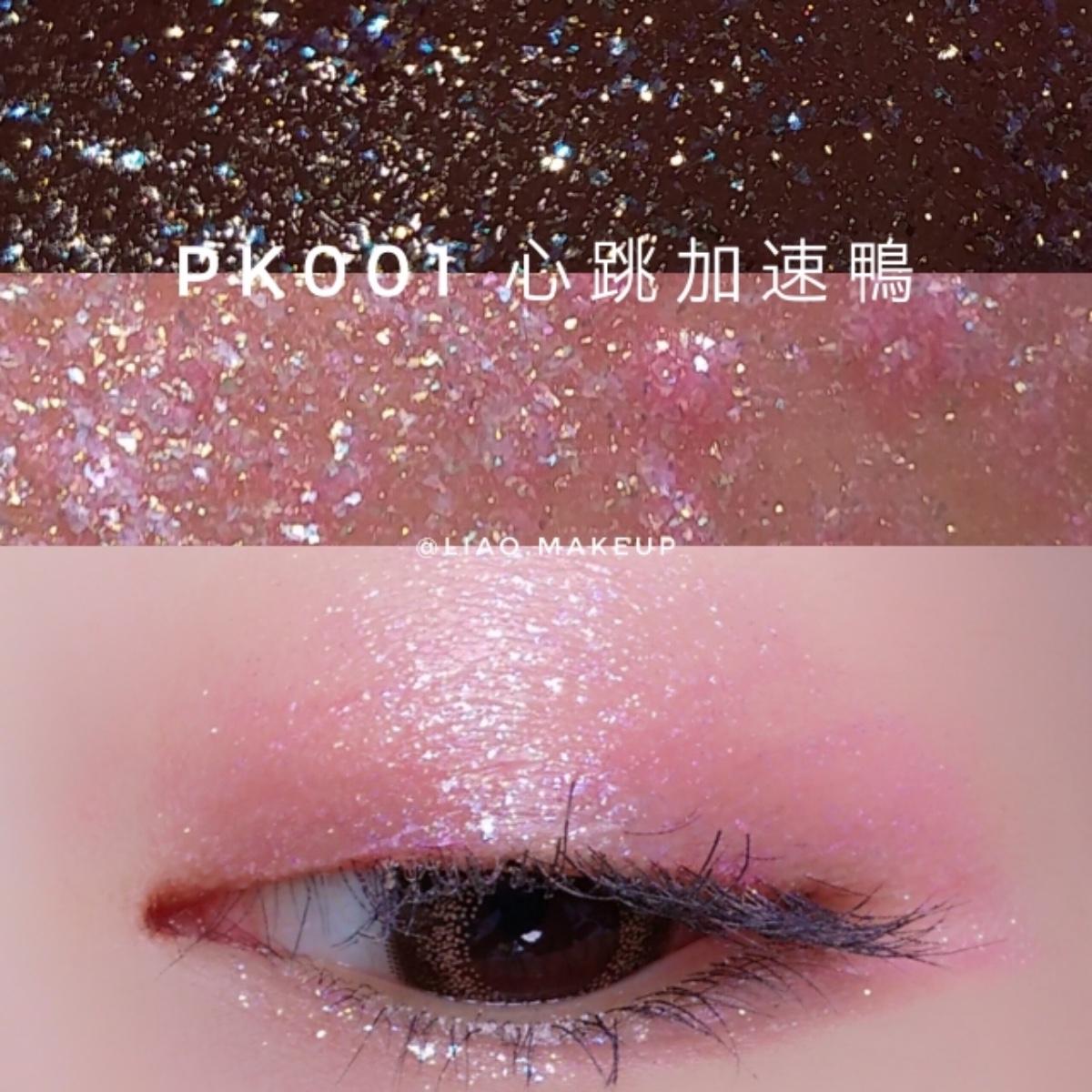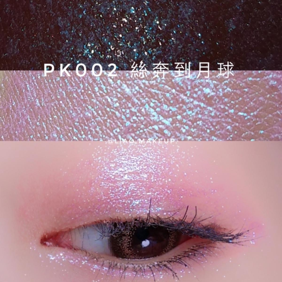 質地非常水,但顏色很飽和!一點點用量就可以用手指頭拍很開(❁´ω`❁)~ 久了之後會乾掉,我用手指頭搓會搓到一些珠光,但上眼影蜜的地方不會斑駁、結塊或是掉屑(⁎˃ᴗ˂⁎)!⠀