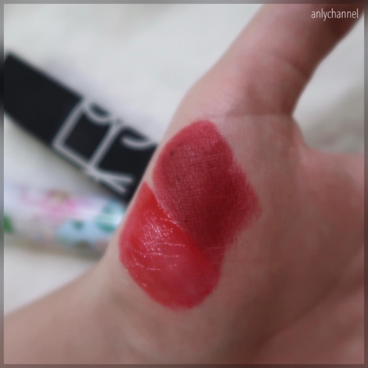 然後IU用的唇彩是水亮的妝效,所以我再疊了apieu water light tint,剛好他是偏粉的顏色,中和了剛剛的紅,看起來比較像劇裡的水光桃紅