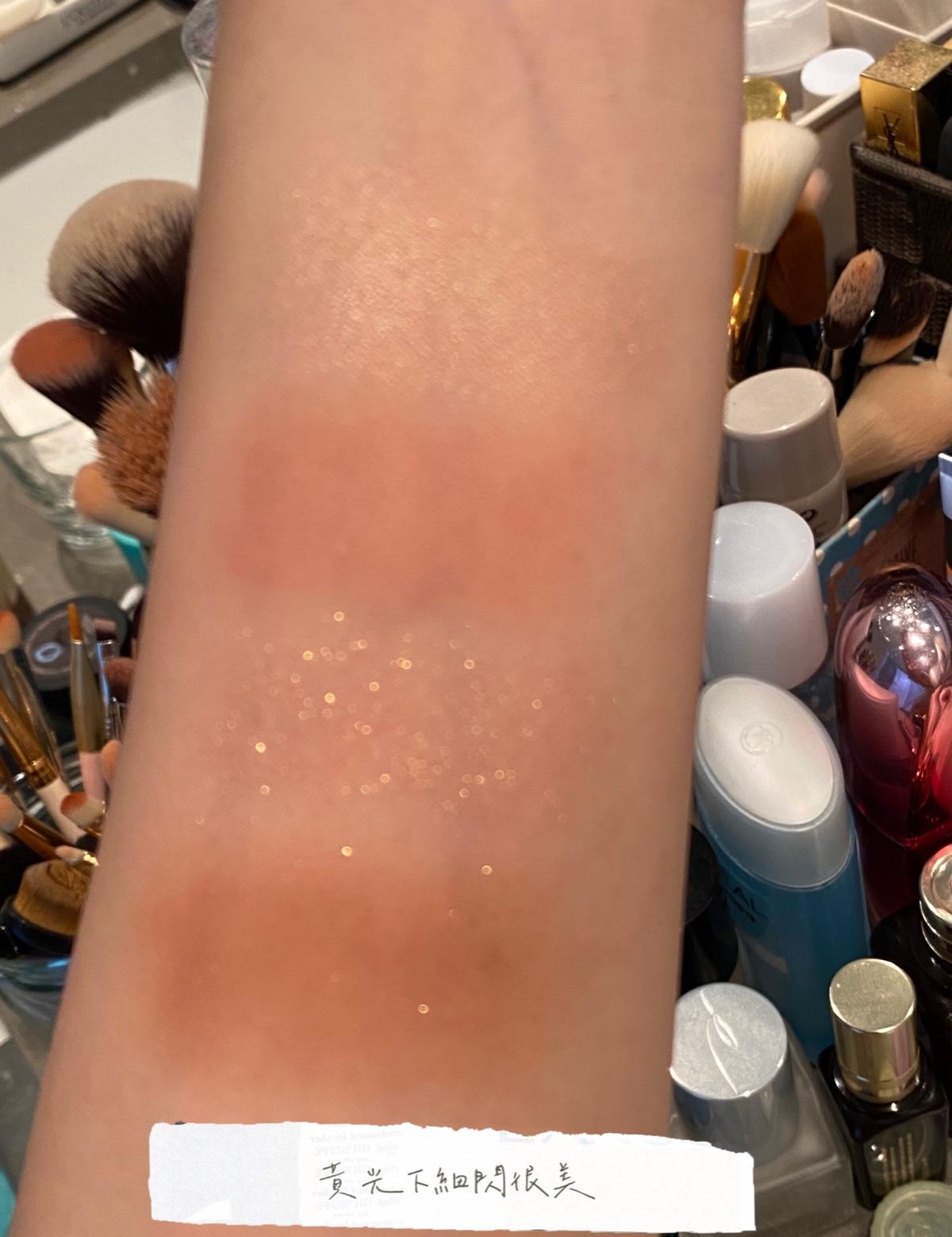 幸好粉質算是對的起價錢,蠻貼膚不飛粉,持久度8小時沒問題 亮片也不會飛進眼睛,有戴隱形眼鏡的大家都懂亮片飛進眼睛有多煩人(超級暴躁)