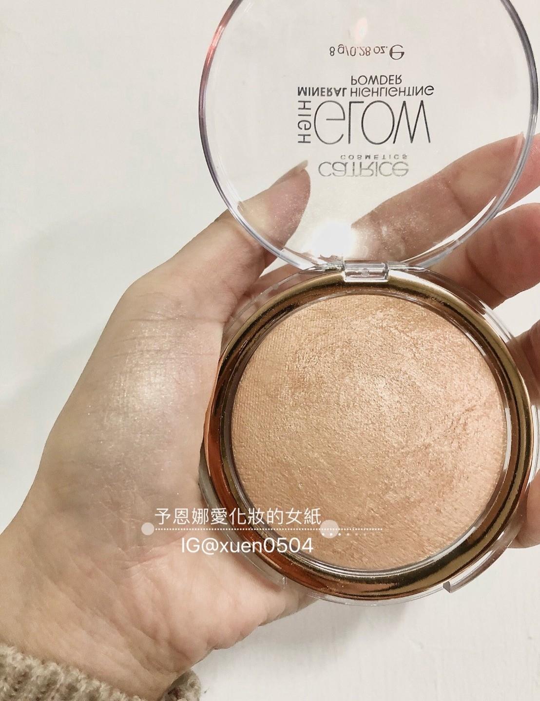 這款來自德國的彩妝,也是歐洲熱銷的彩妝品牌,價格超級超級親民,以這價格來說,打亮餅容量竟然有8g,是不是很驚訝!沒看錯就是這麼大容量,還不入手嗎XD 它的粉質很滑順細膩及極小的珠光粒子,薄擦就非常顯色,就算疊擦也不會也不顯毛孔喔~030這顏色是膚金色,畫歐美風格妝很適合使用這色號,疊擦在腮紅處非常搭配,我都有畫在眼頭、或是臥蠶,一色多用呢~