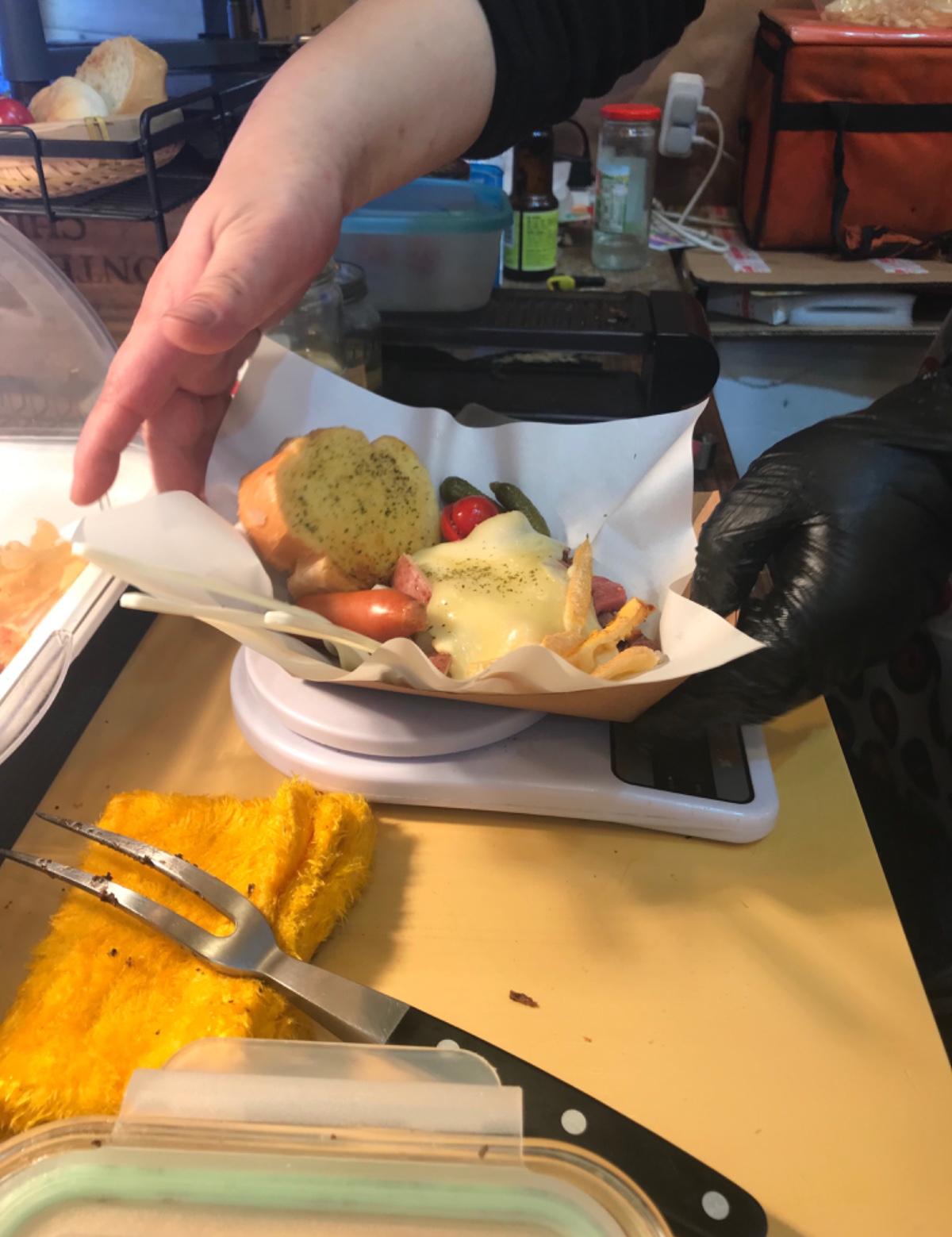 老闆使用有機馬鈴薯和歐洲小洋蔥和醃黃瓜