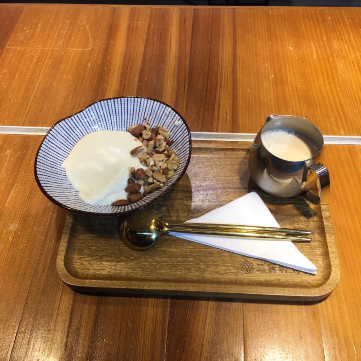 我點的是傳統豆花+堅果,這裏的豆花跟嘉義的一樣是加豆漿欸!豆乳很濃,豆花本體也很綿密,整體來說很好吃,而且不會太甜,適合想吃甜食又怕胖的妹子們🤗
