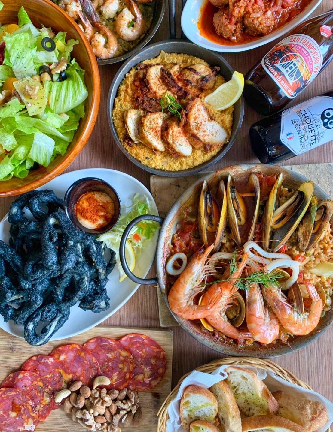 餐點包含了沙拉、開胃菜、比薩、下酒菜、西班牙鍋飯餒❤️