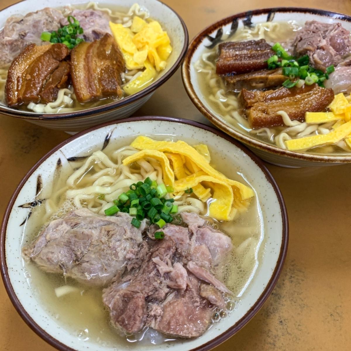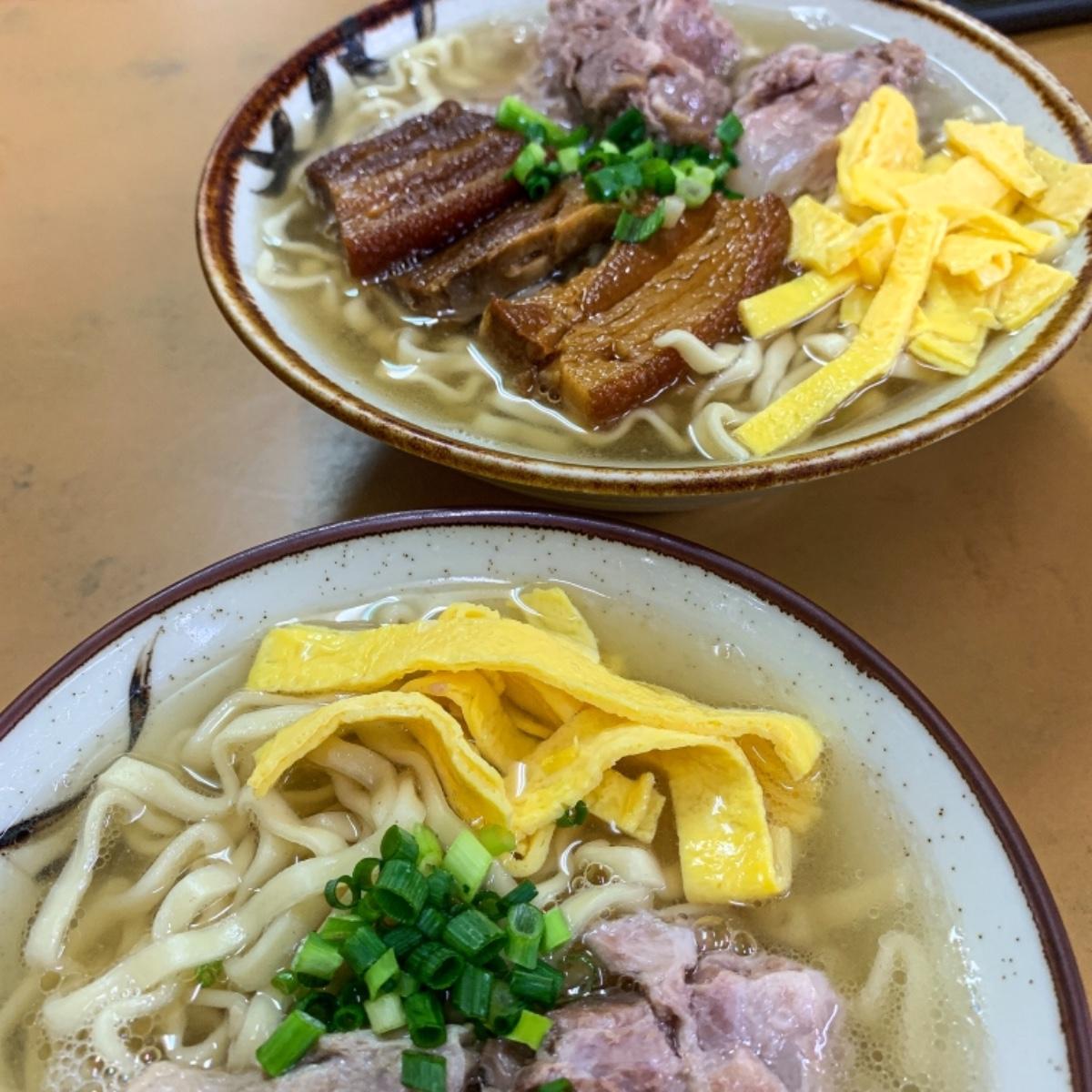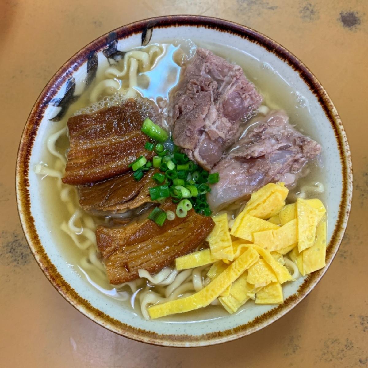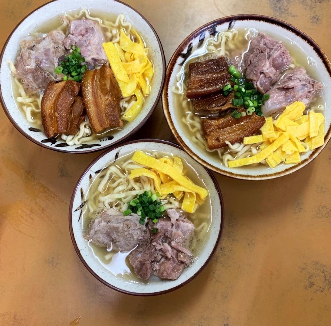 些許肥肉可也不會感到負擔、三兩下一眨眼就把它吃完!搭上旁邊的蔥花與蛋皮,唇齒留香、讓人品嚐到從琉球王國時期就有的