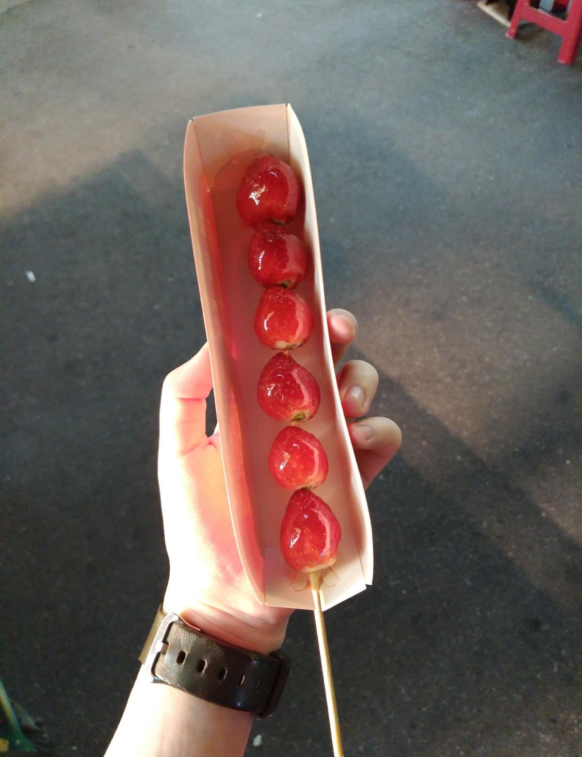 想吃好久的糖葫蘆終於買到了