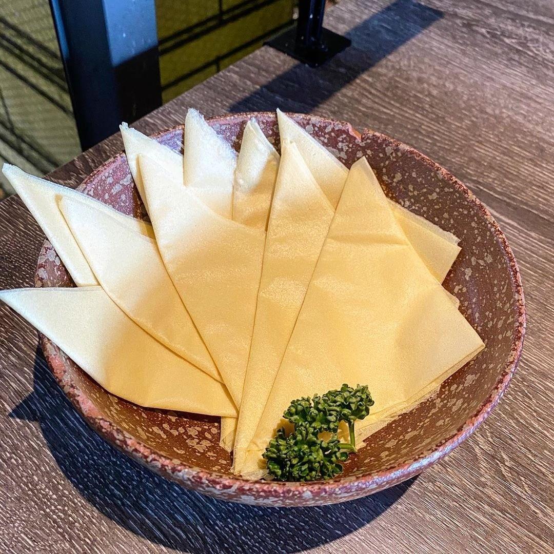日式紙豆腐其實就是豆皮的一種拉~之前有看過某間麻辣火鍋店也有類似的品項。吃起來口感蠻滑順的,加上鍋底是壽喜燒,紙豆腐直接吸附醬油湯汁,很夠味道!