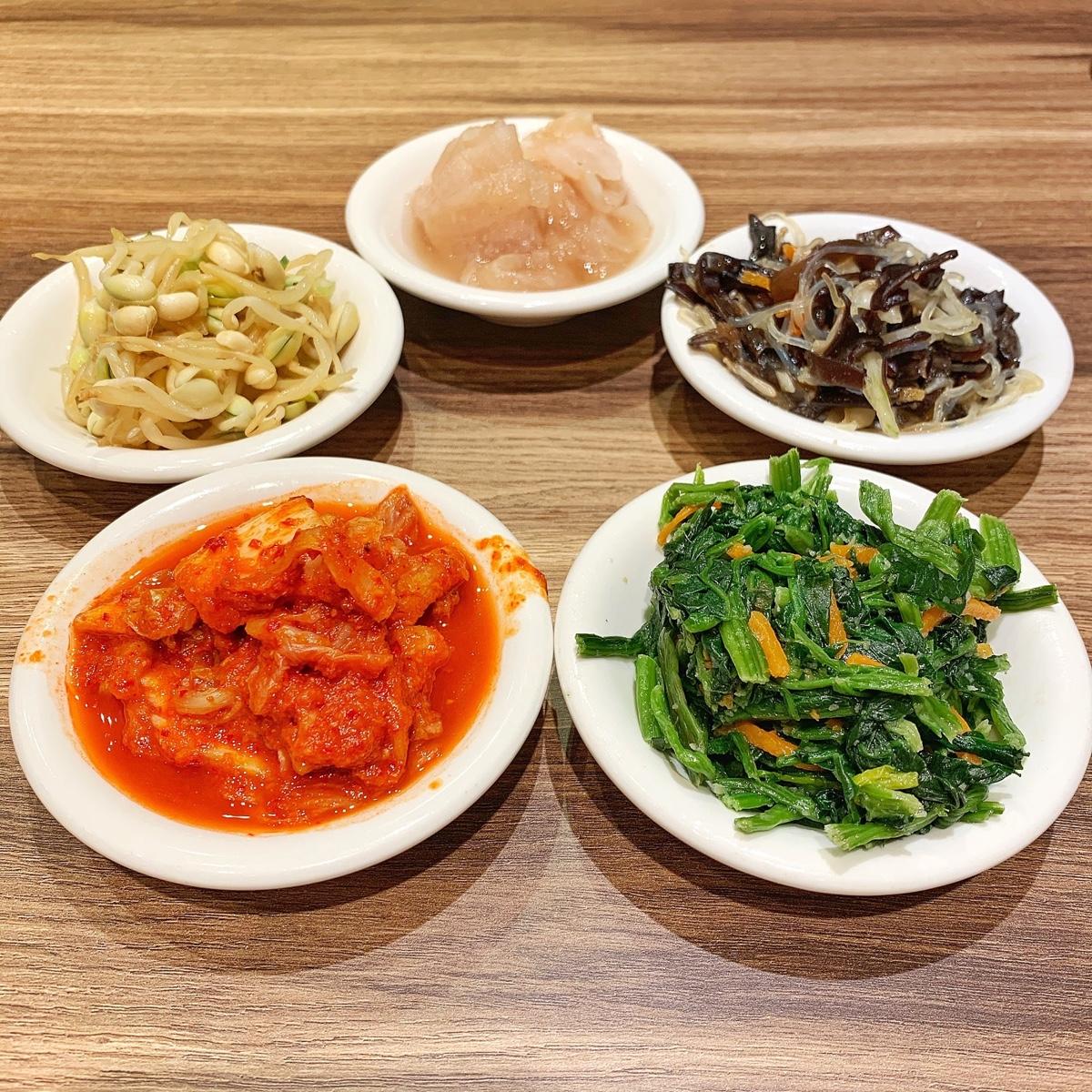 他們家的嫩豆腐煲很特別,會先送上5種不同的小菜來,而且還是無限量供應,後續可以自取,