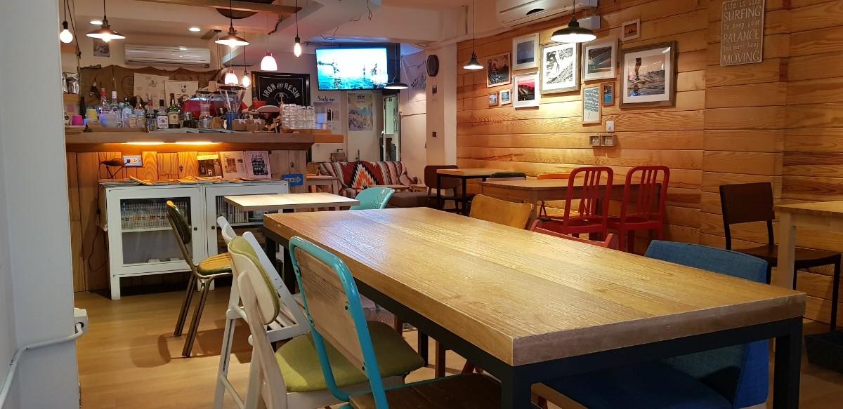 老闆似乎很喜歡沖浪,除了有著衝浪的掛飾外,整體的木頭裝潢更顯海邊小木屋的休閒風格。輕鬆的音樂很讓人可以靜下心聊聊天或是使用電腦。