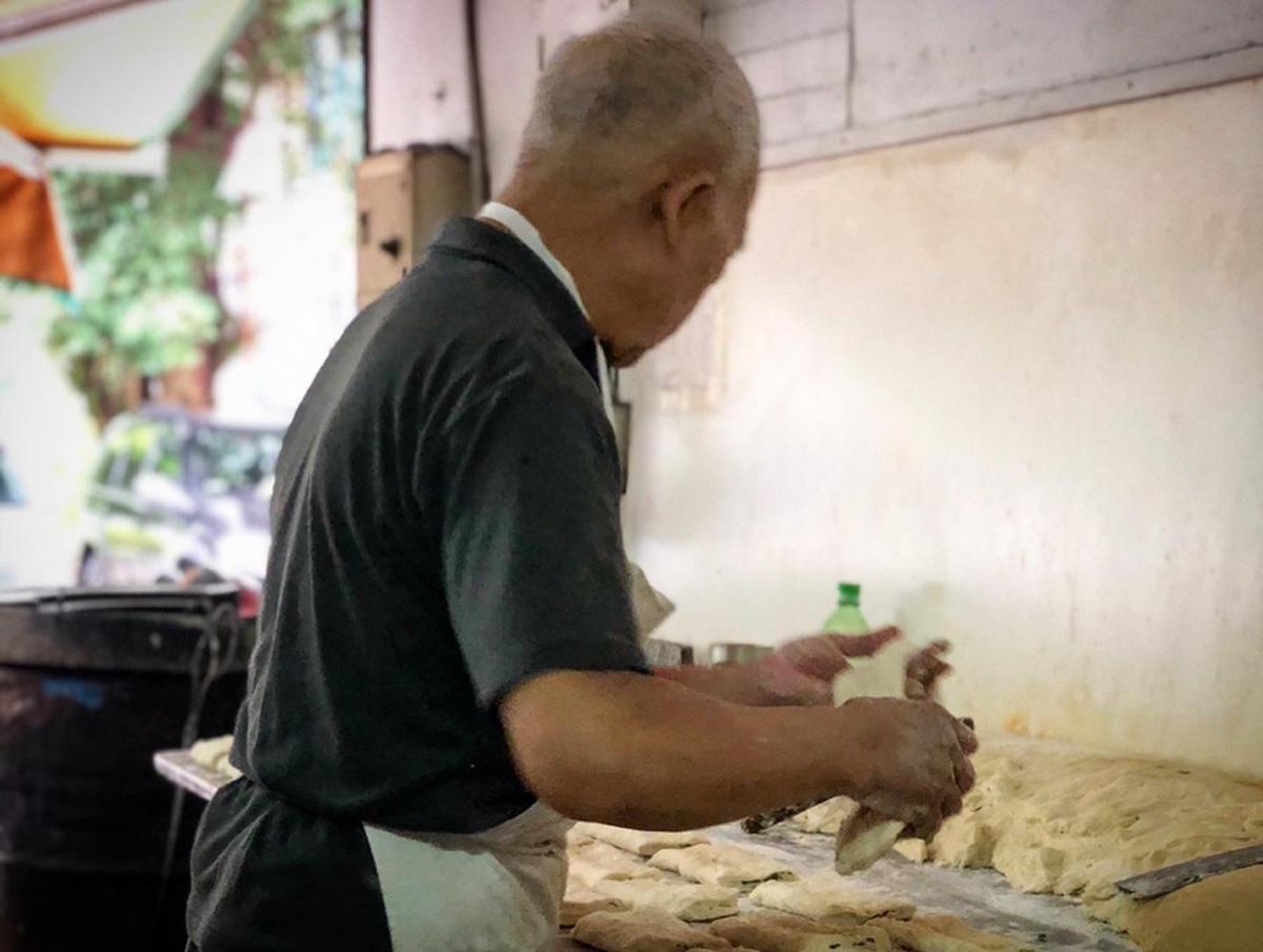 六張犁捷運站下,外觀看過去沒有招牌,但是卻擠滿了滿滿的排隊人潮,濃濃的燒餅香撲鼻而來,看到老師傅在旁邊桿麵烤燒餅一條龍的好功夫,忍不住拿起手機過去問說能不能拍,老師傅馬上說你儘量拍,還說這個貼爐燒餅現在很少看到了,從老師傅的這段話可以得知對於自己的燒餅是非常自豪跟有自信的,燒餅美味的口感就由蛋哥來為大家介紹