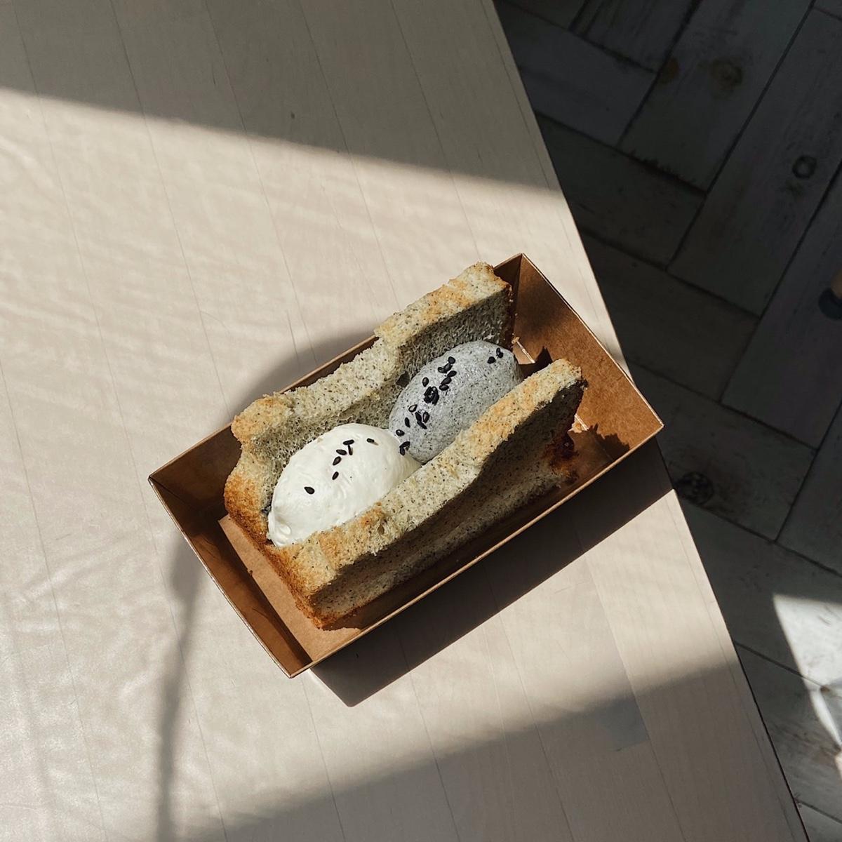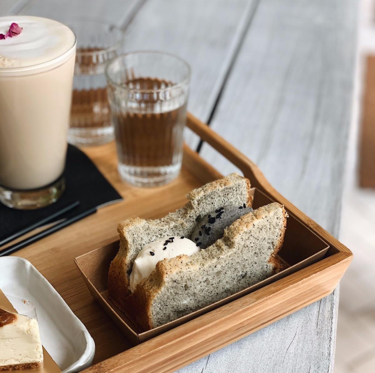 大愛!一百分的戚風蛋糕必點!這顆「桂花芝麻戚風蛋糕」,戚風蛋糕體揉入了濃濃芝麻香氣,蓬鬆的口感使得芝麻香氣在口中散開,搭配上微甜的桂花與芝麻輕奶油,整體口味相當清爽不膩,齒頰留香的印象更是讓人對它念念不忘。
