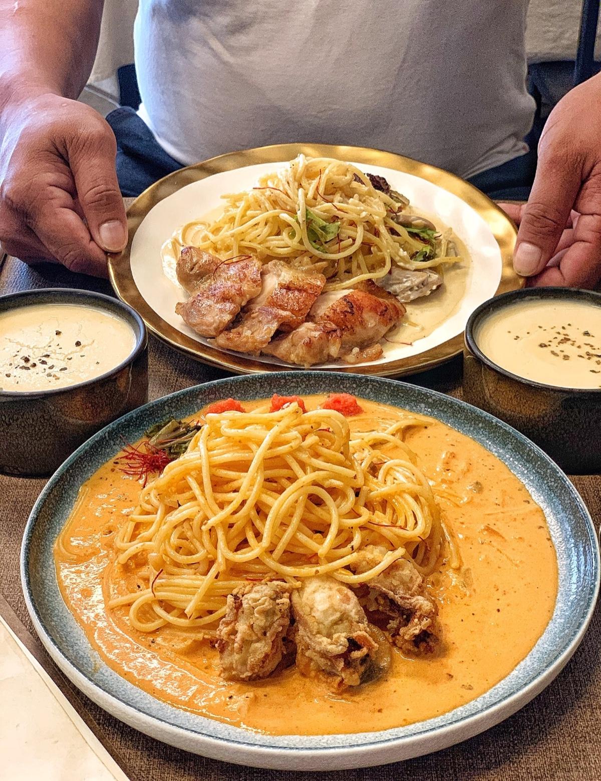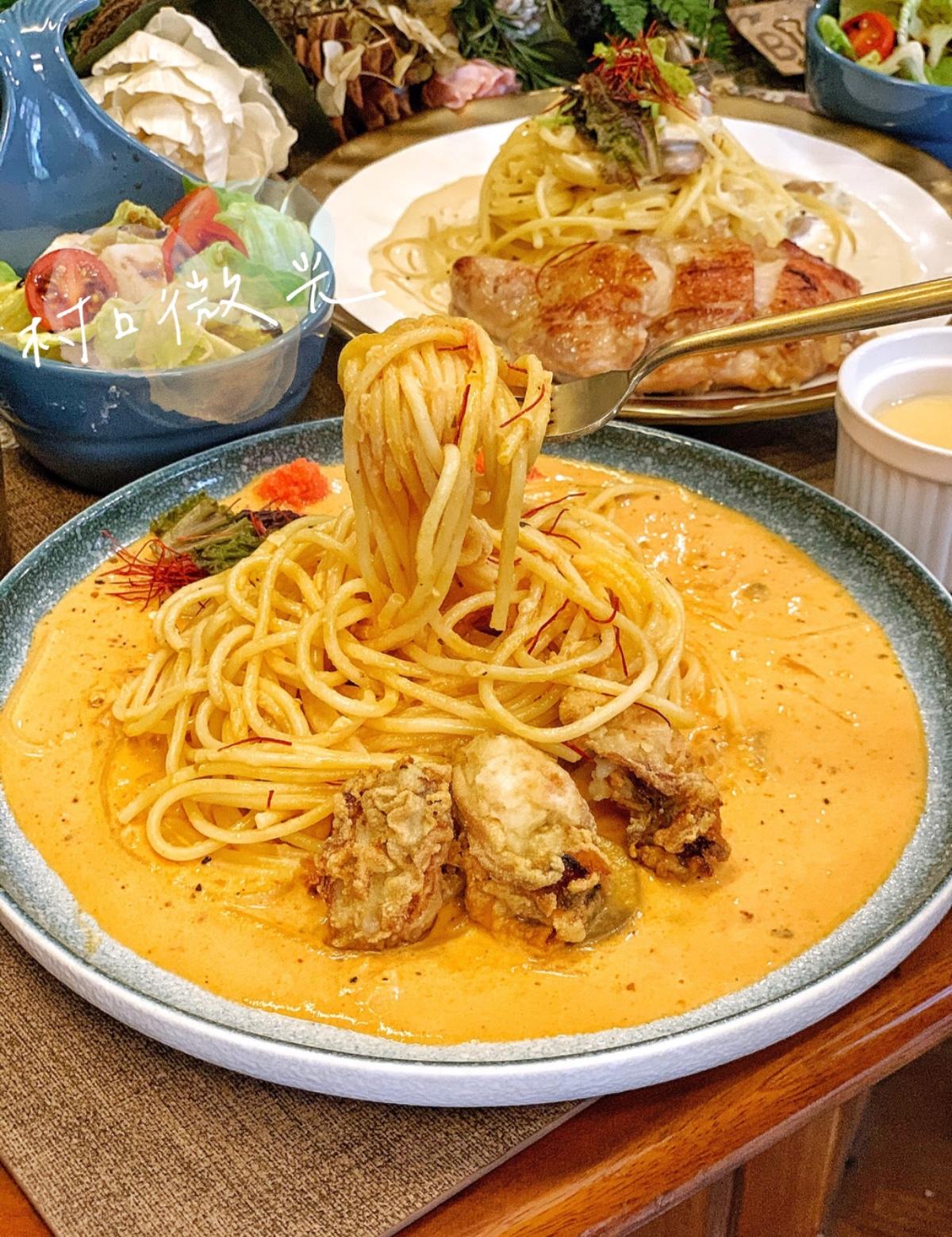 搭配明太子紅醬鮮味十足,層次超豐富🤤
