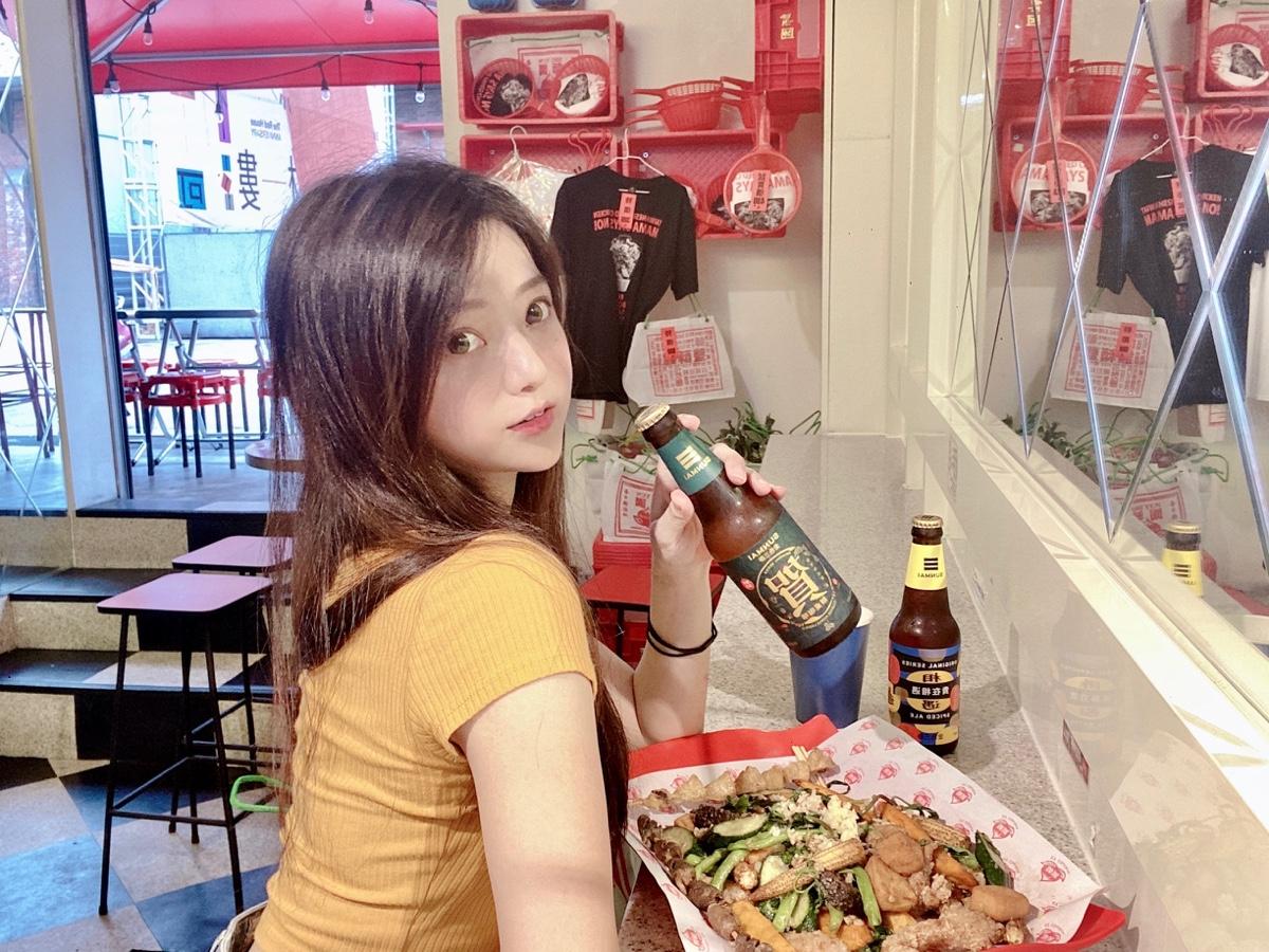 西門店一樣也有內用位置,整間店裝潢採港式台式混合,菱格紋的玻璃搭配紅綠的霓虹燈,整間店復古又可愛,也有提供多種水果啤酒,來西門絕對要來這吃一下鹹酥雞配啤酒,再來拍個港式復古美照🤩