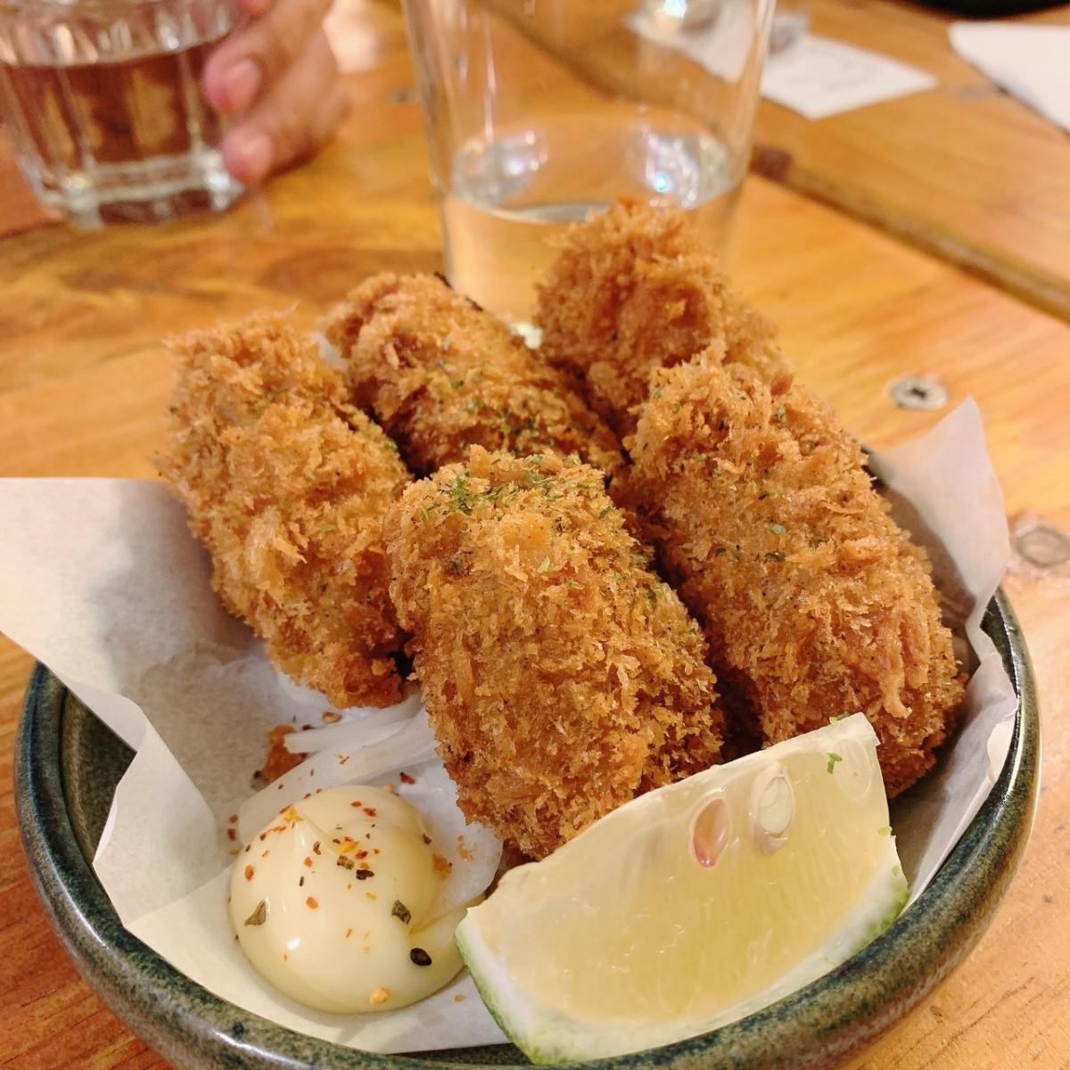 但由於店家在熱鬧的熱河街上所以用餐時段開車的朋友可能要多花一些時間尋找車位🚗和朋友點了干貝飯、舒肥牛排飯、唐揚炸雞佐塔塔醬其中一份+15元把白飯換貓飯🐱貓飯就是白飯上面灑了柴魚片加上醬汁😂還有另外單點了炸牡蠣一份$150元(五顆)喜歡吃海鮮的朋友真的可以點~
