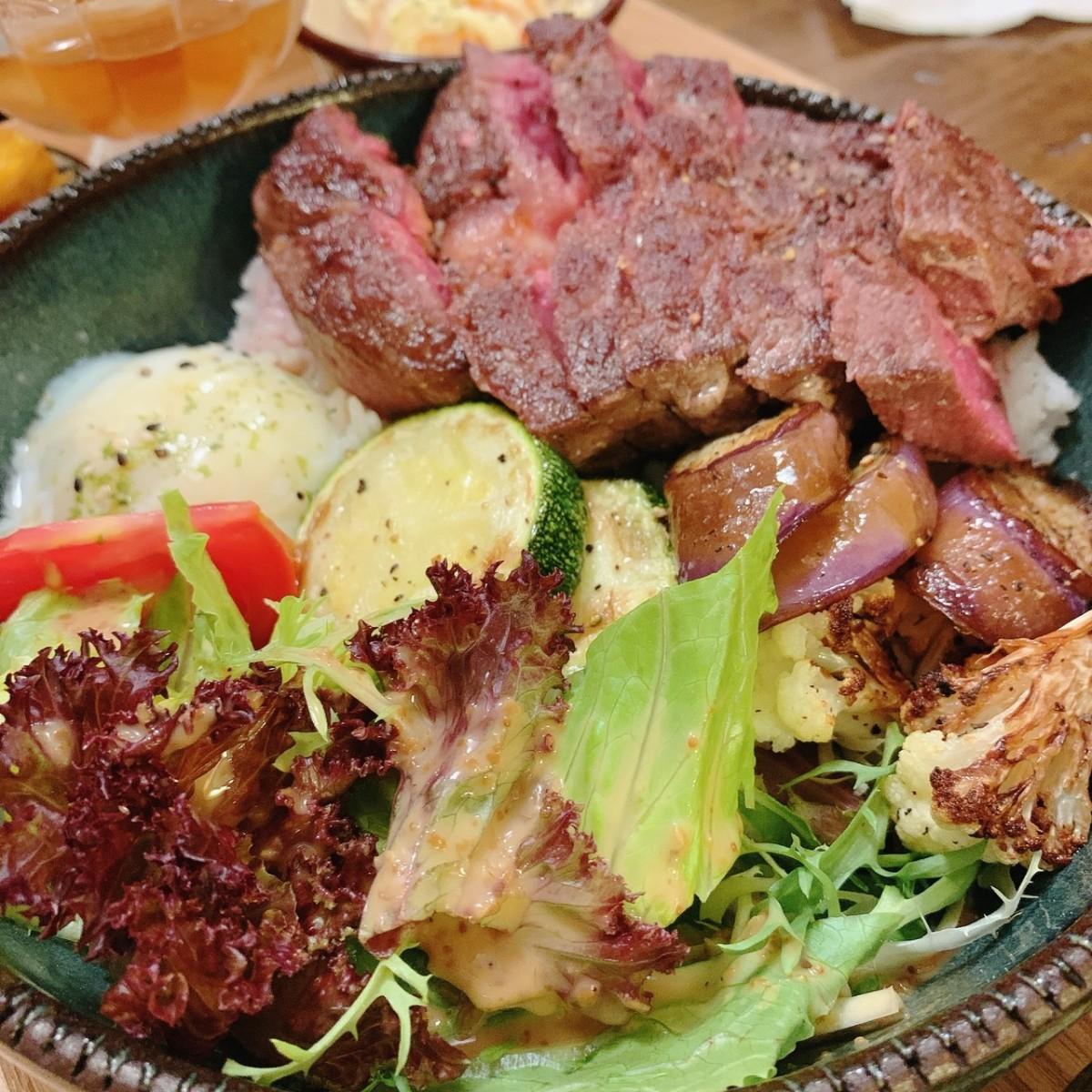 🥩舒肥牛排飯;牛排切的有點大塊,因為朋友剛好戴牙套吃點有點辛苦💦