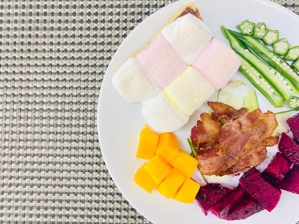 手作手午餐/朝食2020/06/15 培根🥓小黃瓜絲搭棉花糖切克力🍫厚片吐司