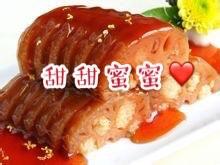 “甜甜蜜蜜”其實就是桂花糯米藕!在吃桌菜的時候,一些傳統的酒樓、餐廳裡會有這道菜。