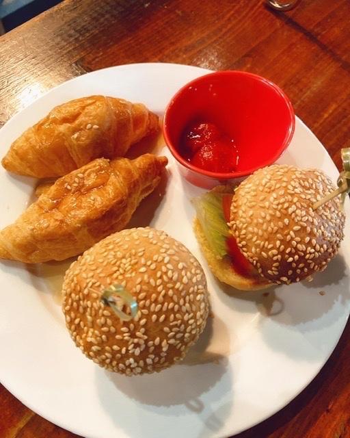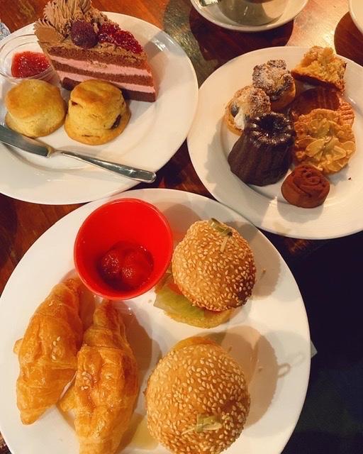 戚風蛋糕、司康、餅乾、小泡芙、炸魚小漢堡與小可頌 飲品搭配伯爵紅茶