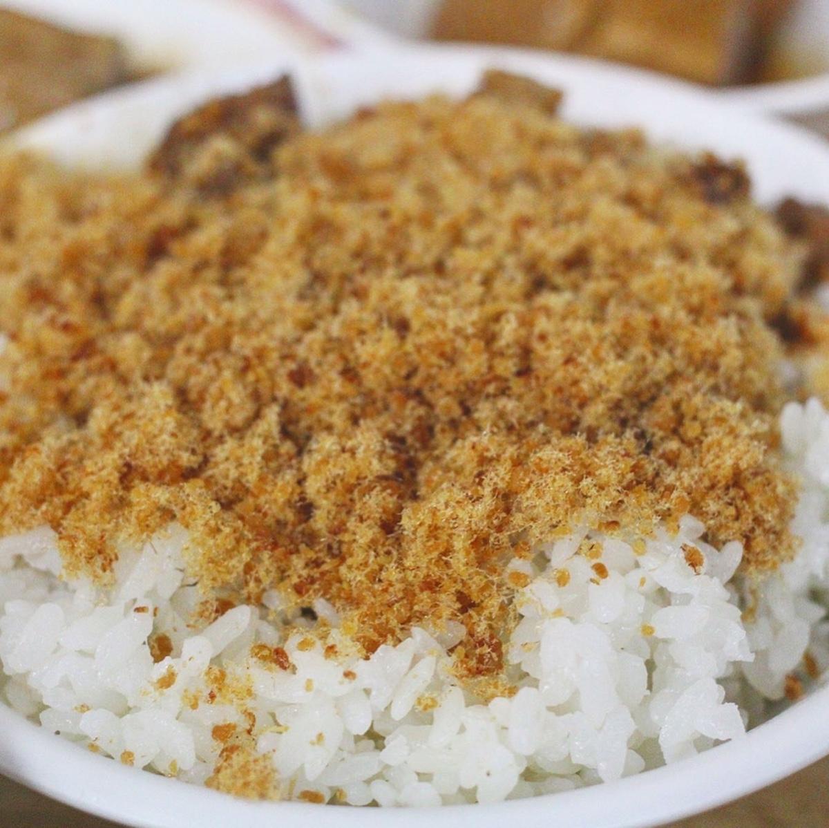 滿滿的魚鬆淋在肉燥飯上,魚鬆的酥鬆感配上滷肉的Q彈感,ㄧ碗飯裡兩種口感