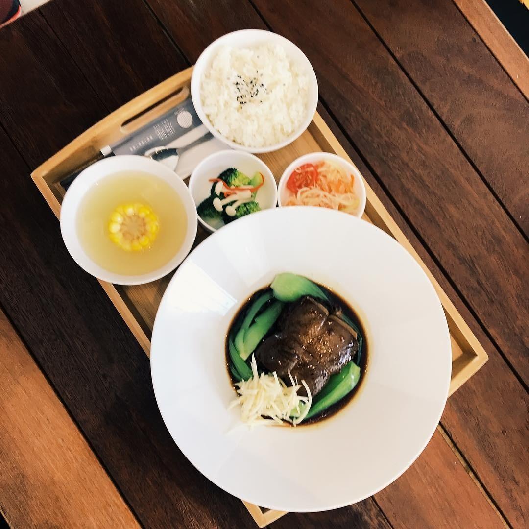 上菜來看擺盤是不錯,吃了一兩口,意外的還蠻好吃,是很新鮮、精緻、不油膩的中菜。用餐的環境也是很明亮、舒服,不管是兩人座、四人座,還是團體座位,都可以透過落地玻璃窗看到灑滿陽光的街道。