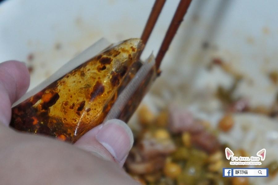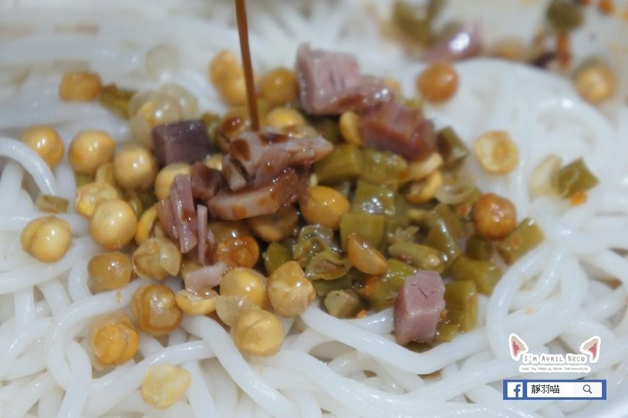 拌勻之後就可以吃啦 這款桂林米粉的配料一樣都好細碎,完全沒辦法在夾麵時一起吃到配料,