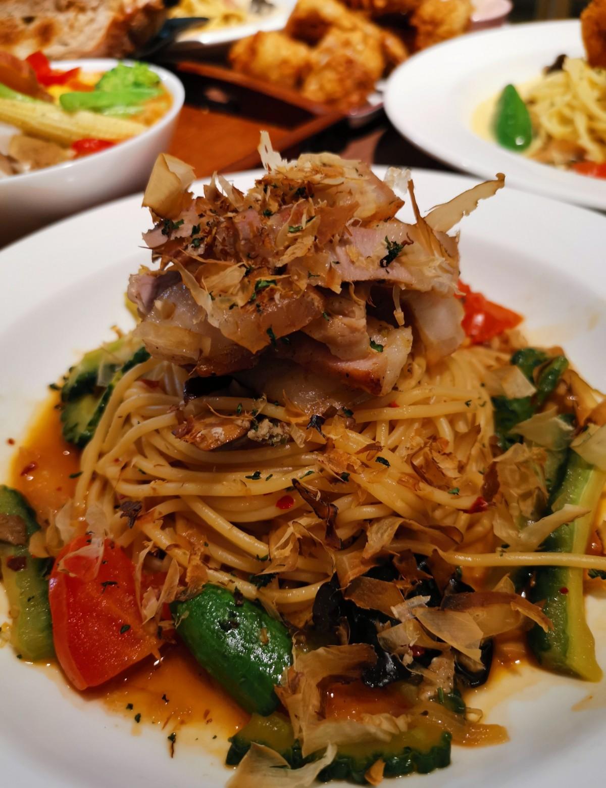 #沖繩山苦瓜辣味豬肉義大利麵 $230