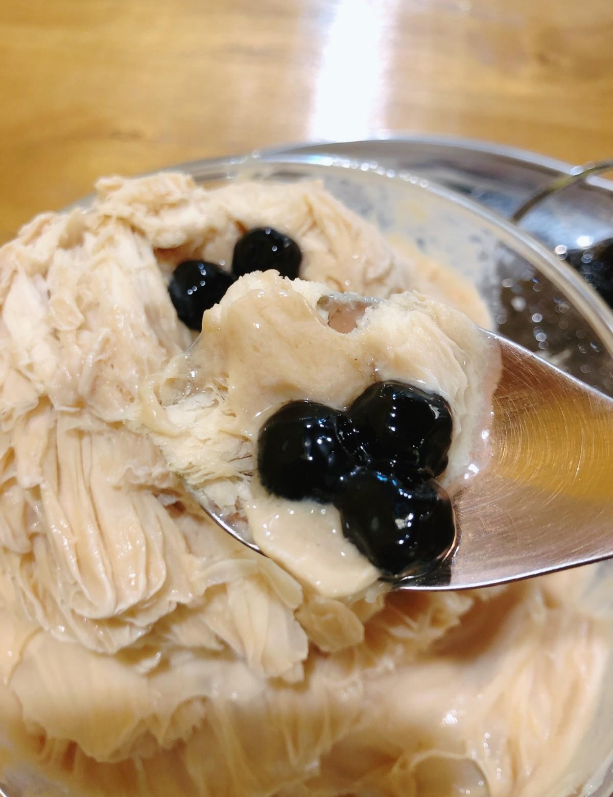 一上桌就可以聞到濃濃的伯爵茶香氣,對於超級伯爵茶控的小編來說直接醉了XD含進一口綿密的雪花冰,剛剛的伯爵茶香在口中爆開,甜度不會太甜,個人沒有加煉乳,若吃比較甜的朋友可以自行添加喔!珍珠我覺得比一般手搖店的好吃,是Q彈偏硬的口感,比起雪腐的珍珠小編比較喜歡冰癮的珍珠ε٩(๑> ₃