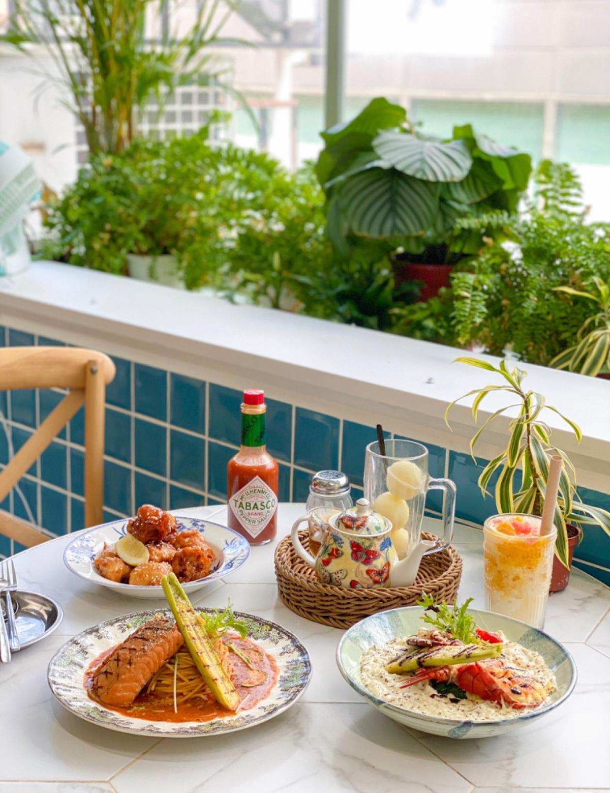 整間店裝潢超級可愛 店內有許多綠色植栽