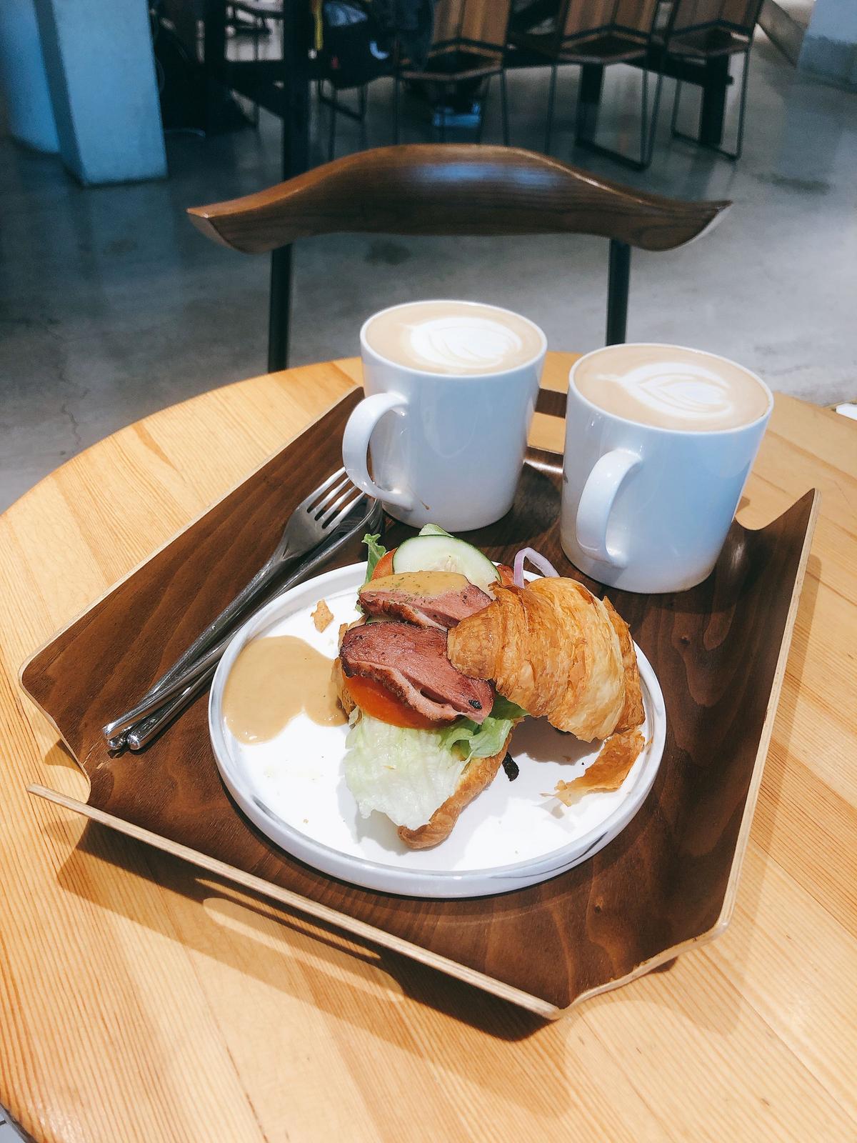 從早晨到傍晚都能享受到高品質環境的咖啡廳,鴨胸搭配胡麻醬味道還蠻特別的,鮮奶茶的茶味比較重一些些 ☑️ 煙燻鴨胸佐深煎胡麻醬可頌 $100 ☑️招牌伯爵奶茶$80(甜度可調整) 📍 高雄市前金區中山二路547號 #咖啡#下午茶#早午餐#coffee#brunch#高雄下午茶