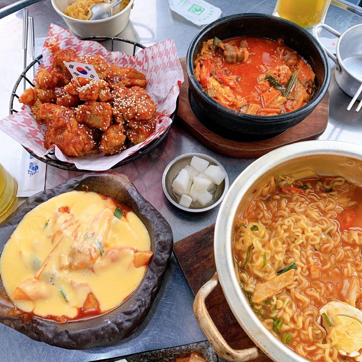 但辣味韓國炸雞跟辣炒年糕(加起司),