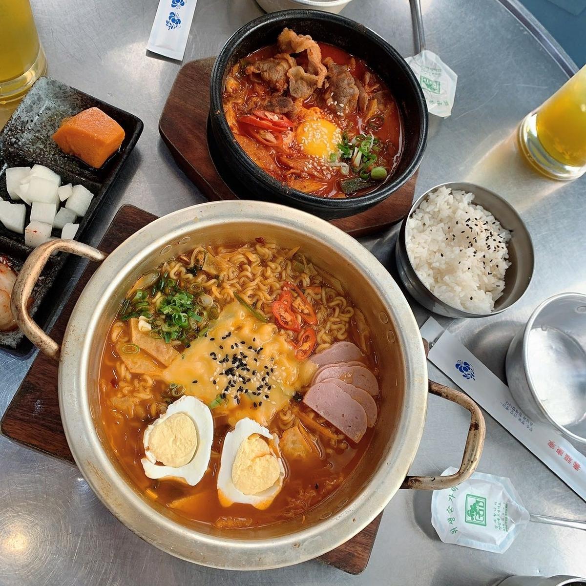 辣牛肉鍋和韓國拉麵部隊鍋👍