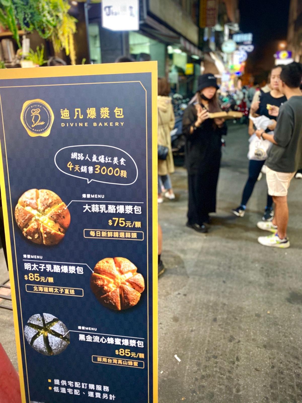 美食分享[Divine Bakery迪凡爆漿包]台中北區一中商圈就有韓國IG爆紅的爆漿麵包 每日當場現烤 還有三種口味可選擇 也可宅配