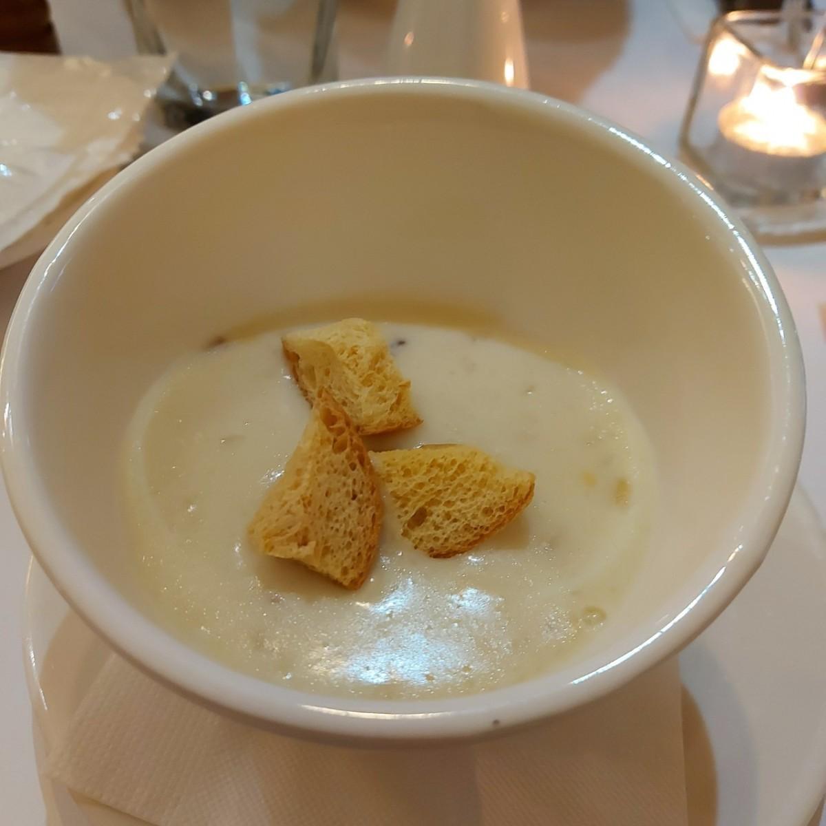 這碗濃湯也很令人驚艷,看似平凡無奇,但是濃郁和不平凡的配料有,好喝得香濃到心坎裡!上面的麵包也不是乾到像石塊的口感我覺得很好。