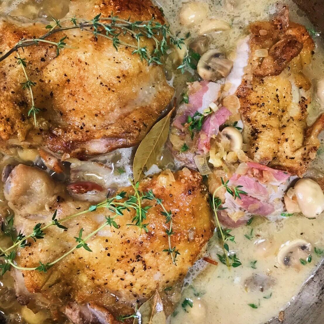 法式白酒燉雞(Fricassée de Poulet)在我踏入廚房學習時,可以說是我第一口吃到最讓我驚訝的菜,也可以說是啟蒙我對法式料理有興趣的第一道菜。