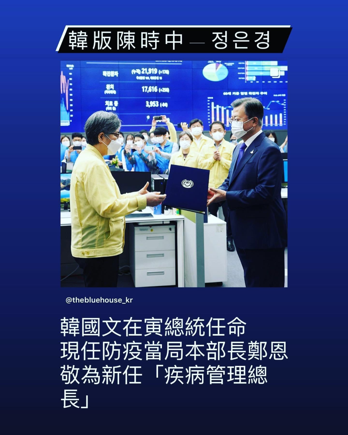 #0911 #韓國🇰🇷新聞 ——————————— 「台有陳時中,韓有鄭恩敬」 ⚡️在韓國陸續爆發疫情時,每天出來開記者會,與專家學者討論如何解決疫情問題(跟我們的阿中部長好像🤔)沒錯~她就是鄭恩敬本部長 ⚡️今透過青瓦台發布任命消息及任命狀,鄭恩敬為韓國信任「疾病管理總長」 ————————————————— #恭喜恭喜 #herashow #covid19 #정은경 #해라쇼 #코로나 #koreanews