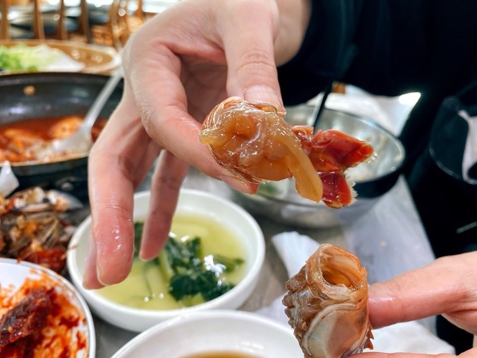我們點了辣燉白帶魚+醬蟹大餐~每人18000韓元(470多台幣)真的是CP值超高!