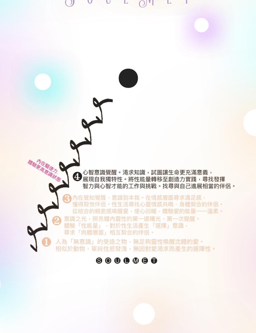透過意識喚醒本我/性能量——人類較低層次的頻率,讓我們穩固扎根於地球上🌍🌱。踏上雅各階梯的旅程,我們將遇見各種人生課題,那是在降生於地球前的自己(意識能量形態)替現在處於地球人的自己所挑選的人生劇本,可以說還是能量光芒的我們,是有如此喜愛冒險與挑戰的精神呢!為了讓自己紊亂的頻率恢復平衡與高頻,於是我們在決定的那一剎那,憑藉全知挑選了一個最適合雕塑自己能量的人體水晶:松果體(地球人生劇本都濃縮在這裡了,包括您的肉體與原生家庭。)