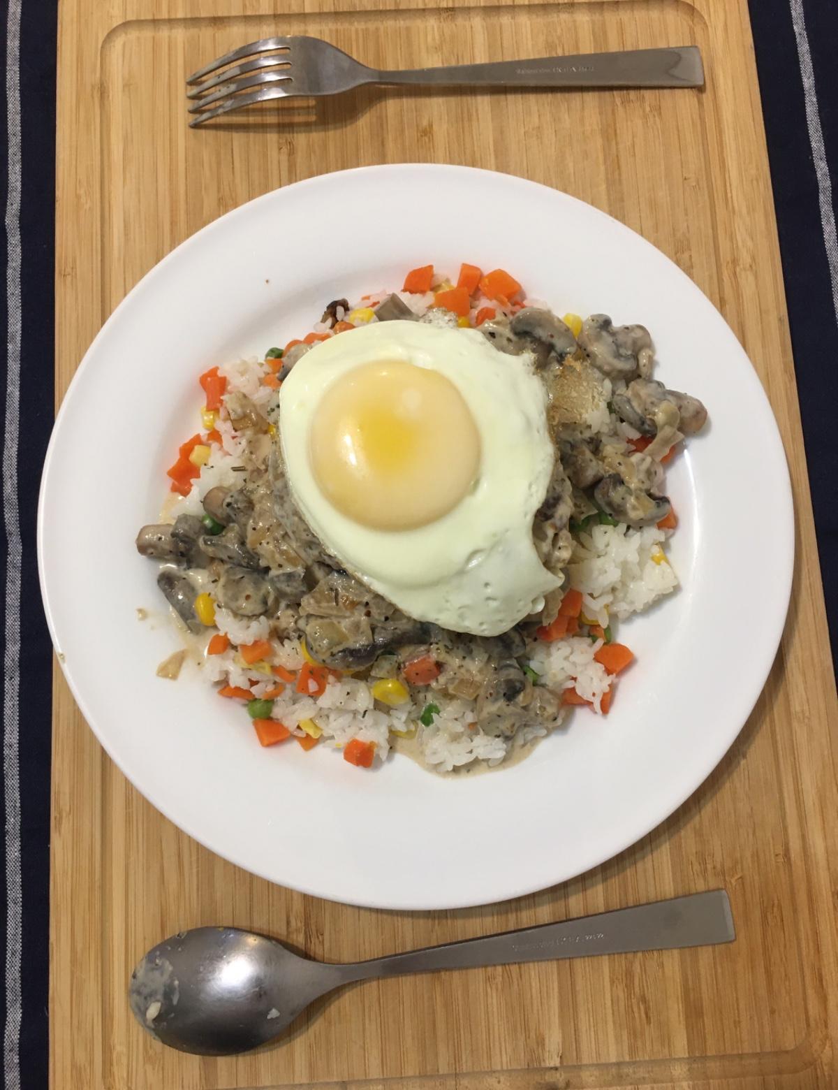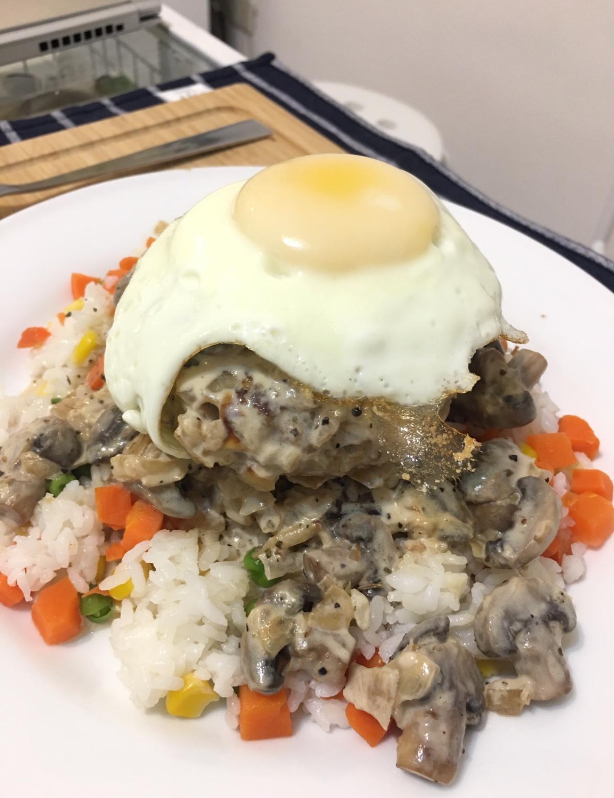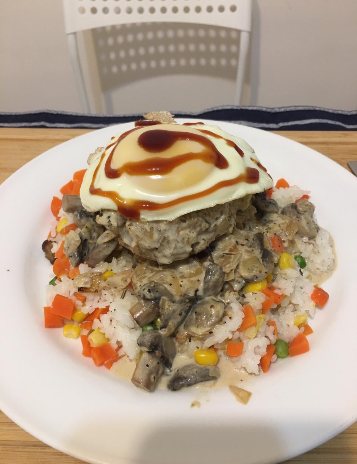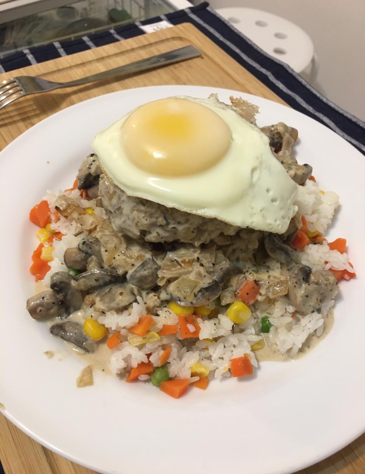 鮮奶油🍄蘑菇洋蔥漢堡排飯🧅🍔