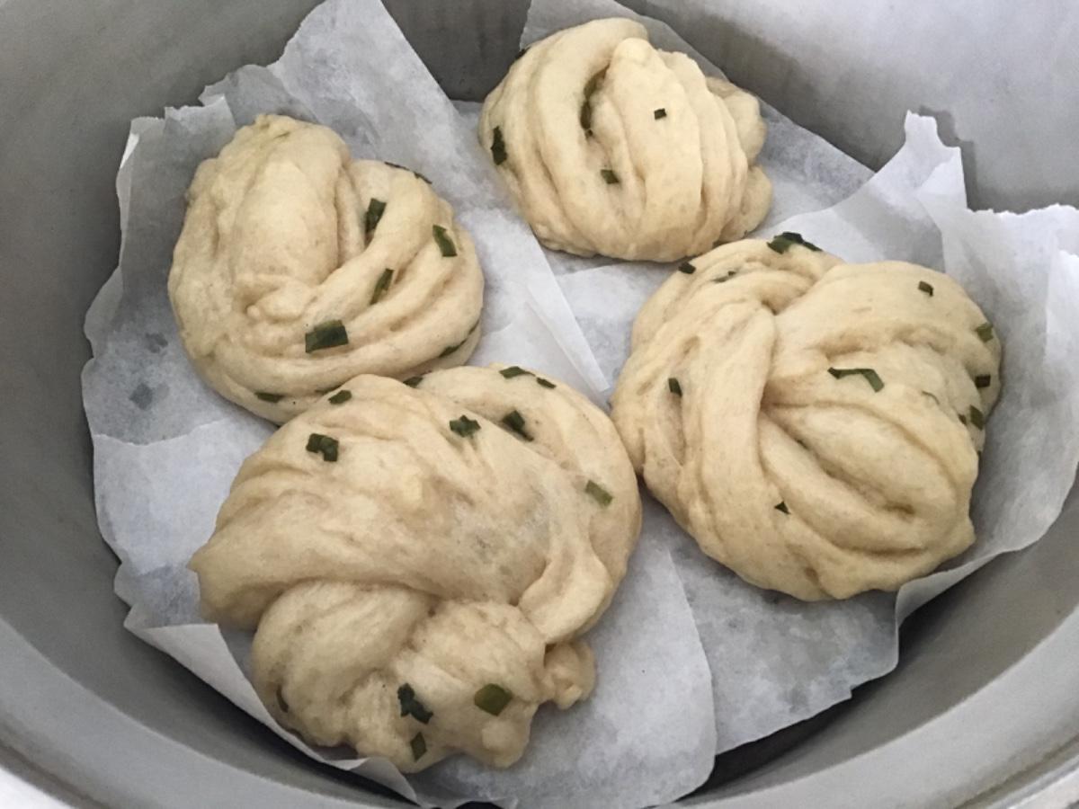 我的饅頭魂持續燃燒,今天做了很有挑戰性的蔥花捲饅頭,看著食譜上的步驟,我預期自己會做出一坨屎吧💩幸好最後是有成形。