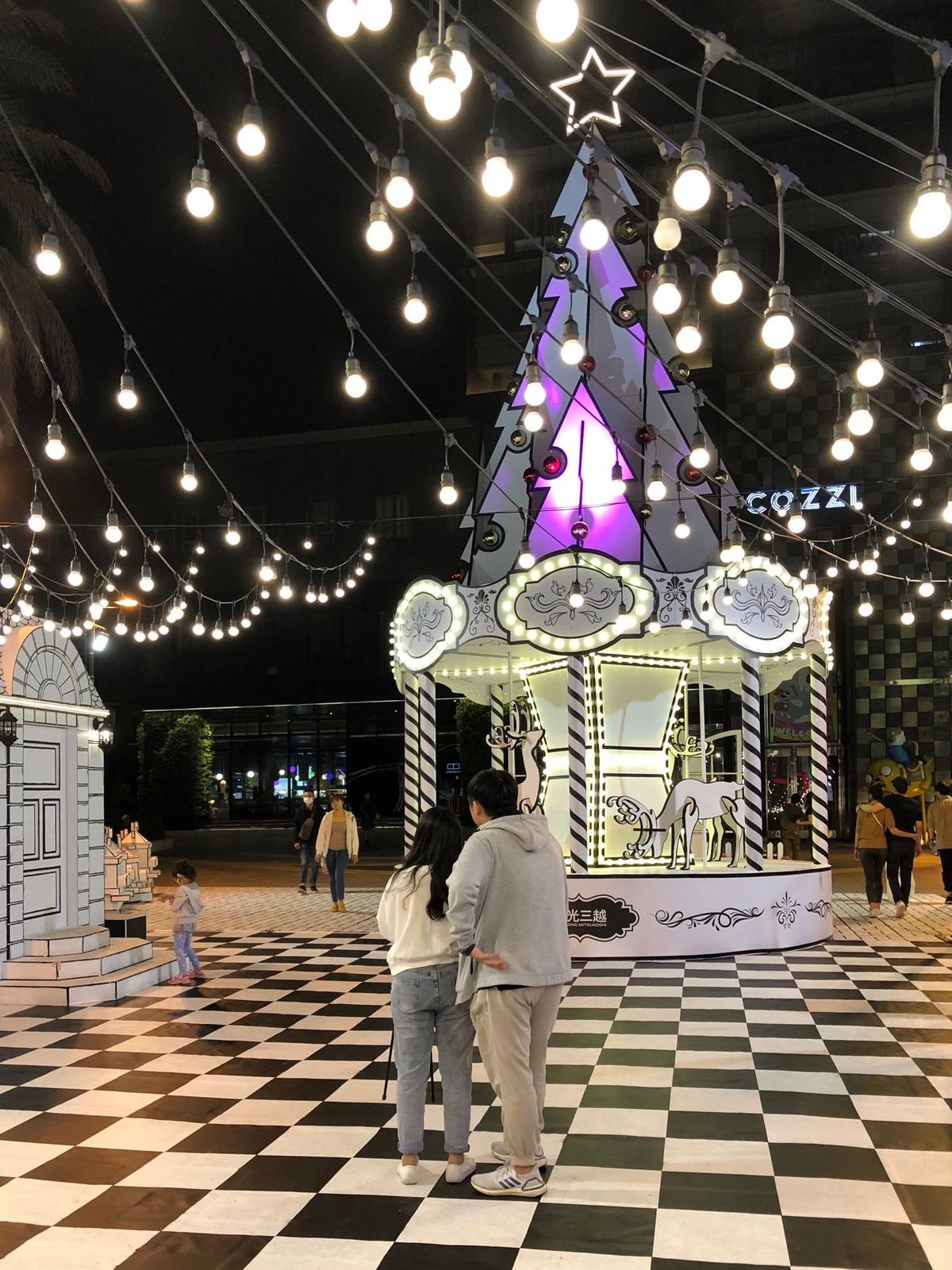 中央聖誕樹與旋轉木馬呈現歐洲市集的中心感