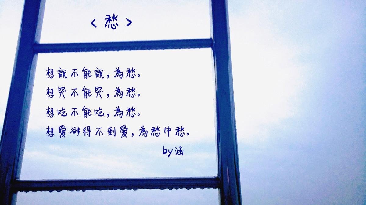 宋.辛棄疾先生的《醜奴兒·書博山道中壁》 少年不識愁滋味, 愛上層樓,愛上層樓。 為賦新詞強說愁。 而今識盡愁滋味, 欲說還休, 欲說還休。 卻道天涼好個秋。 https://www.popdaily.com.tw/forum/life/839159(我們都有病系列之三)
