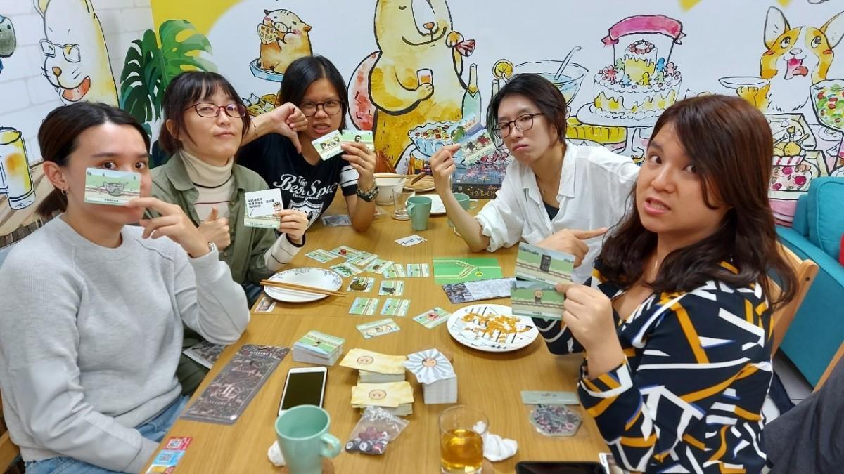 這款遊戲讓我們今天嗨到最高點,列車長必須選擇一條鐵軌碾過去,除了列車長的另外四人分成兩隊抽天使牌、惡魔牌和特性牌放在鐵軌上讓列車長決定是否碾過,被列車長碾過的隊伍會收到一個骷髏,集滿五個的就輸了!