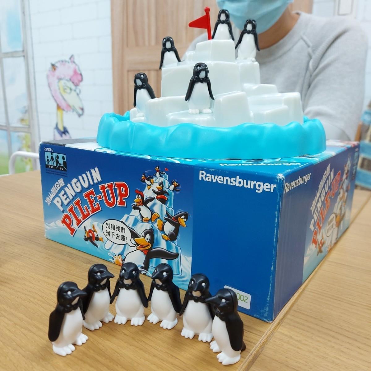 這個遊戲完全沒有難度,就是疊疊樂的概念,企鵝先摔下來的人就輸了,設計這個冰山的人真的很厲害!怎麼可以把他做的讓企鵝要掉不掉的,非常適合暖場的派對遊戲,剛好在我們五個人到期的時候可以玩!這張企鵝照超有事,完全就是霸凌企鵝的概念。