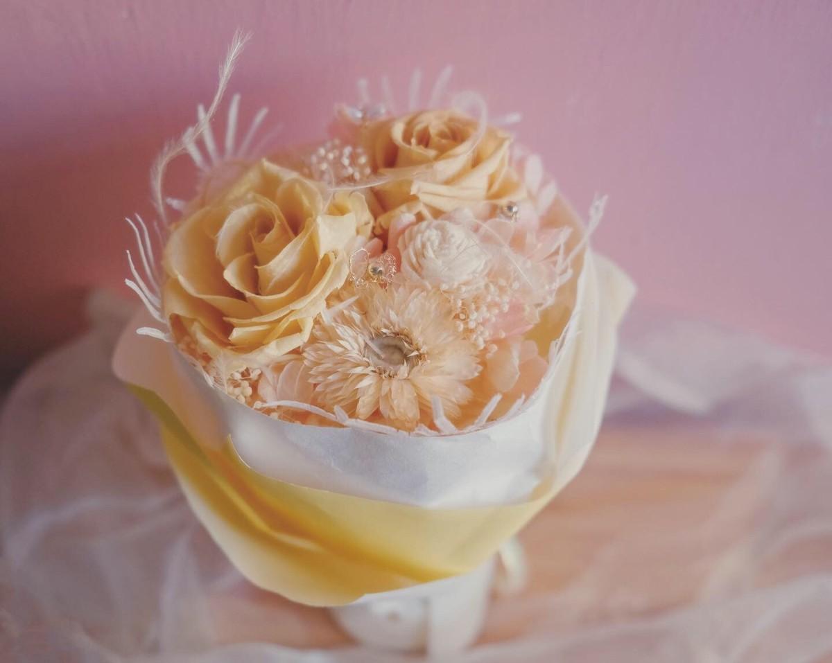 永生花/不凋花,有別於乾燥花的低彩與捲曲,精緻的工法使其如同鮮花般的色彩生動,彷彿能聞到花的氣息。