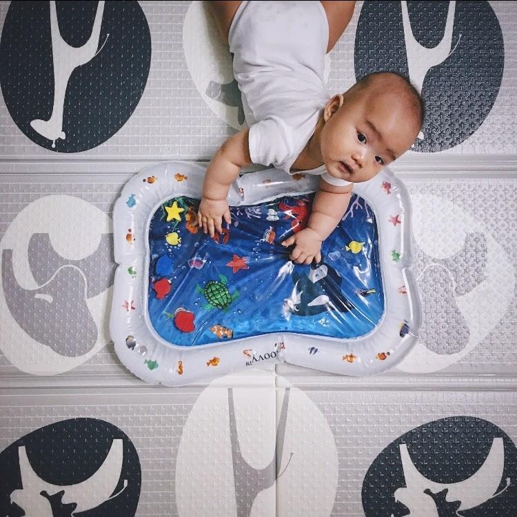 Nina一看到就立刻下單的玩具,還兼具消暑的功能太厲害了!外圈是充氣、中心是裝清水就好,中心有魚跟海星會在拍拍時移動,刺激眼球肌肉發展,還有手眼協調的訓練,小風開心時手腳都會擺動,幾乎全身都可以運動到。