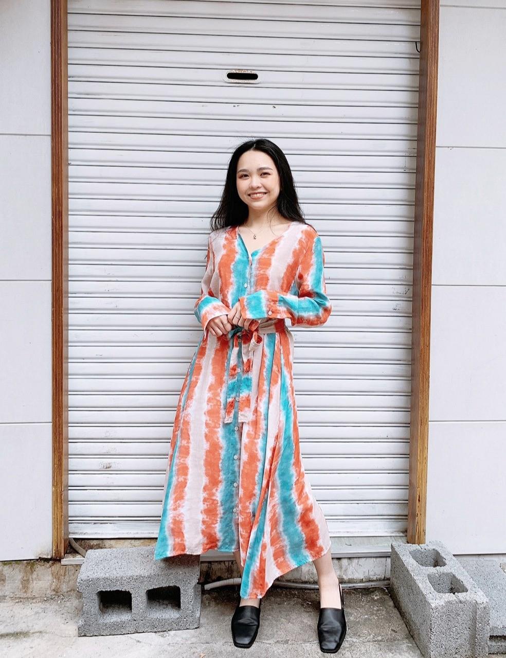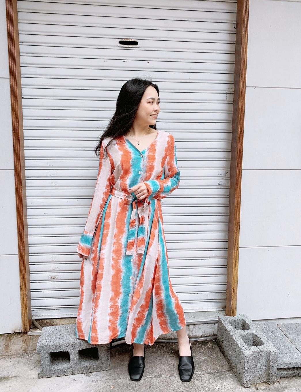 這款是排釦式的設計,除了當洋裝也可以當外套來穿搭也超好看~