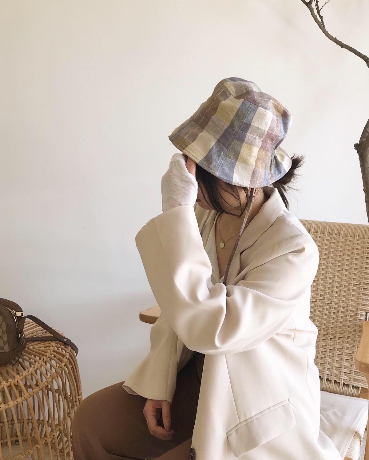 本來很猶豫要不要買的格紋漁夫帽