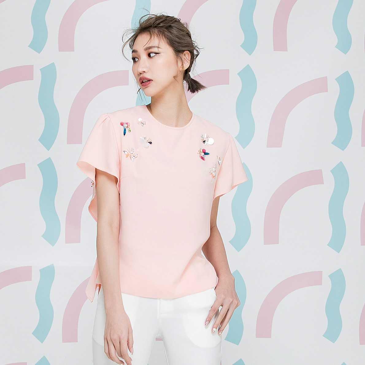 精緻珠飾蝴蝶袖上衣