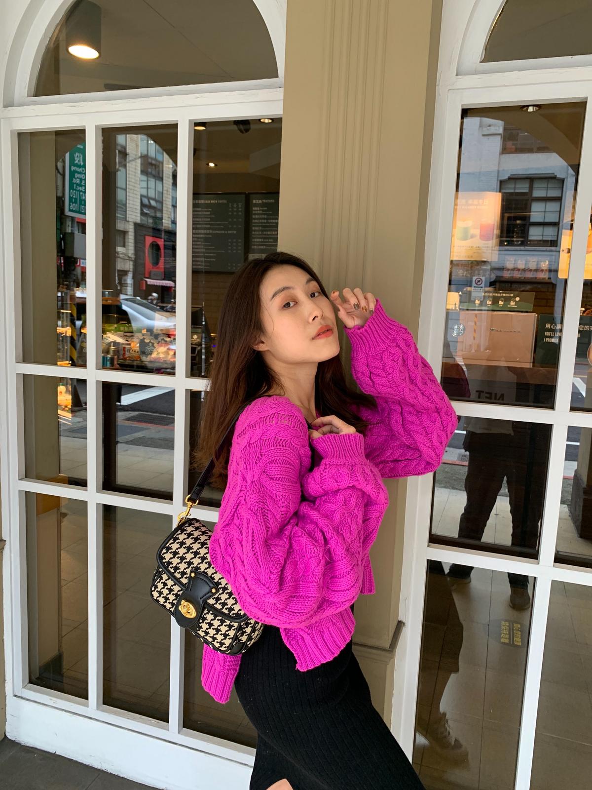 這個特別顯氣色的桃紅 愛了愛了🌺 順便再分享一下千鳥格紋這個小眾包 比起大家都在背的 我就是不想撞包🌛 直接上傳無調色的照片給大家康康🌝
